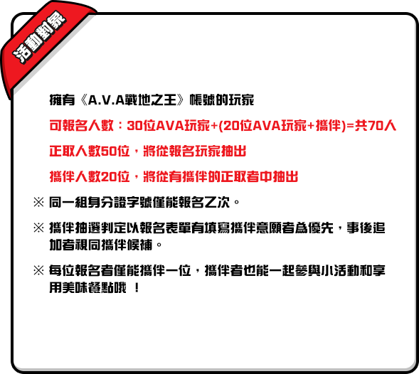 - 活動當日請成功報名的玩家攜帶身分證明文件,以利官方人員確認身分。