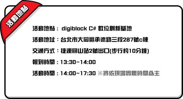 - [車資補助] 活動當日玩家抵達後進行報到,成功完成報到繳交收據後,即可獲得對應補助活動點數。