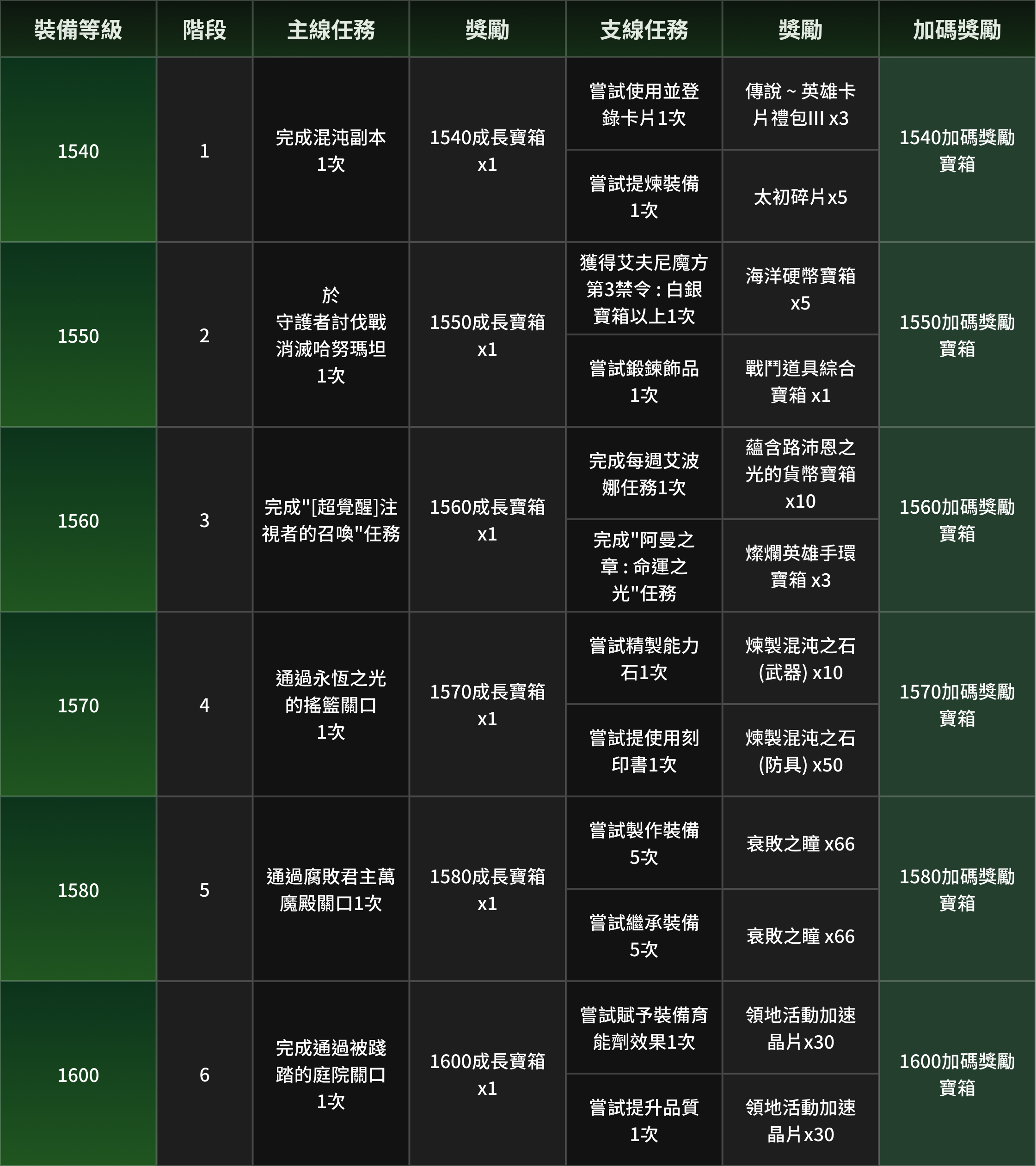 ※加碼獎勵可在完成各階段主線任務以及支線任務後獲得。